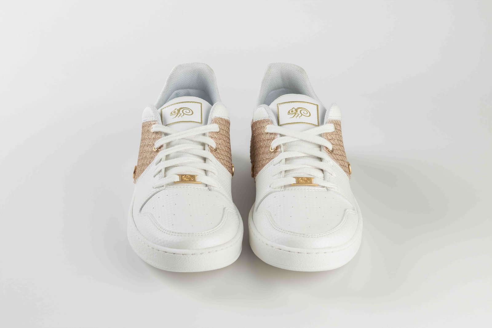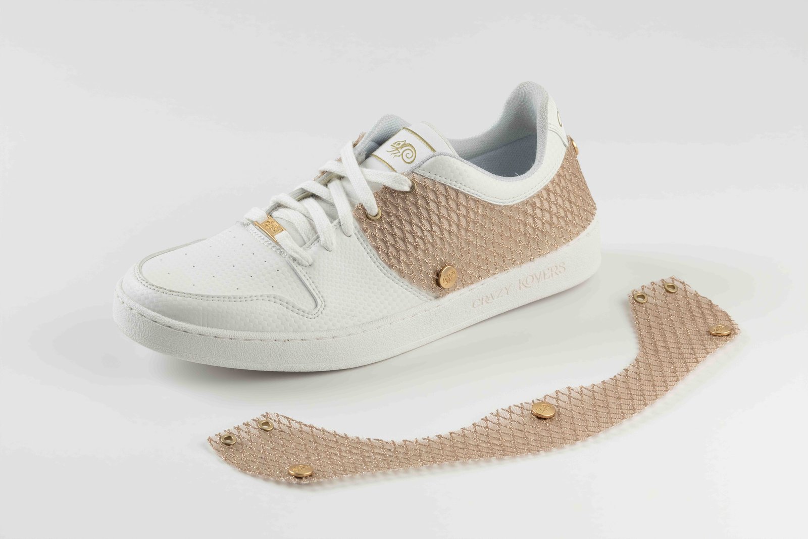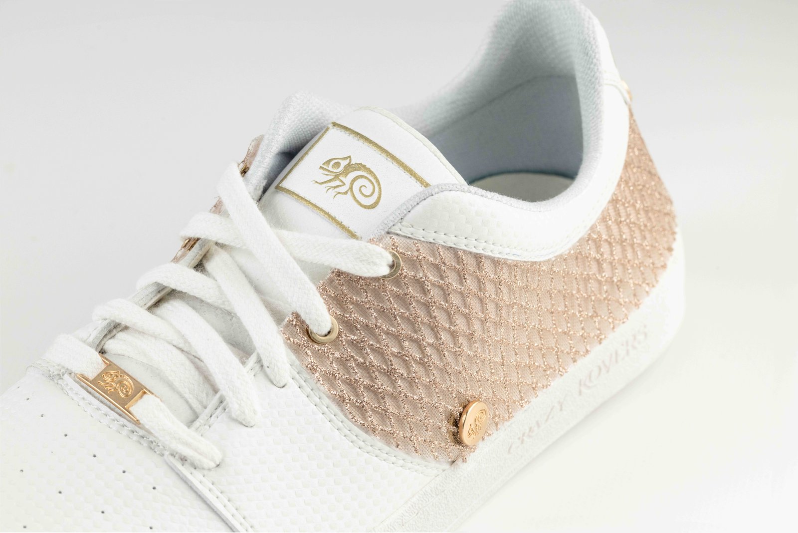 Su superficie genera un brillo texturizado y regular, aportando luz a la zapatilla de forma equilibrada y contenida.